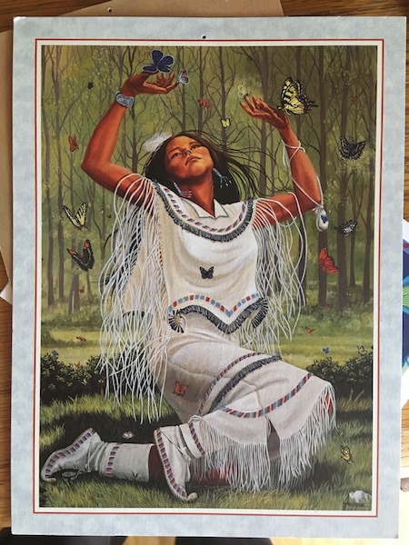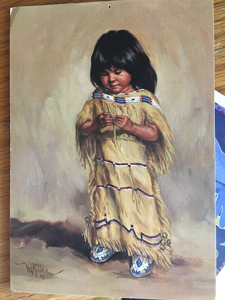 Pewnego razu, miałam wtedy może 12 lat, w kopercie była kartka – reprodukcja ręcznie malowanego obrazu Indiańskiej dziewczynki. Kiedy zobaczyłam tą kartkę, zamarłam. Znowu pojawiło się niejasne wrażenie, że ja to tak dobrze znam. Włożyłam kartkę do stosiku innych kartek od “cioci Marysi”.